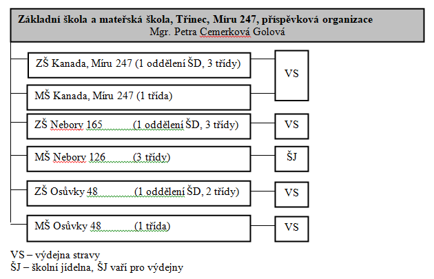 Škola jako příspěvková organizace vznikla 1.1.2003 sloučením ZŠ Kanada, MŠ Kanada, ZŠ Nebory, MŠ Nebory, ZŠ Osůvky a MŠ Osůvky. Nejstarší školou je ZŠ Nebory (1926). ZŠ Kanada byla otevřena v roce 1937 a ZŠ Osůvky v roce 1960.